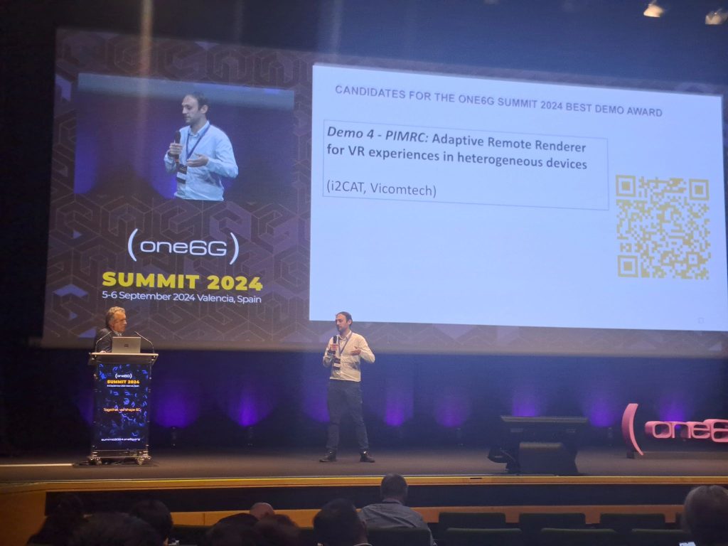 The 6G-XR project was present at the co-located events IEEE PIMRC 2024 (2-5 September 2024) and the One6G Summit (5-6 September 2024), held in the Palacio de Congresos in Valencia, Spain. Partners from the consortium, including Vicomtech and i2CAT, organized engaging demo showcases that highlighted the project’s advancements in 6G technology.